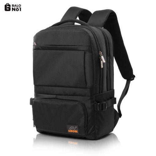 Mặt trước balo đính logo PVC biểu tượng thương hiệu KMORE..