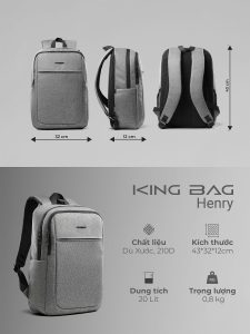 Balo Laptop KINGBAG Henry 15.6 inch – Gọn nhẹ & hiện đại