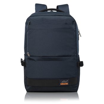 Mặt trước balo đính logo PVC biểu tượng thương hiệu KMORE trên nền Hypalon dập lỗ.
