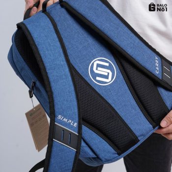 Thân sau: Phần lưng có lớp lưới Air Mesh thoát hơi nhanh, in logo tròn của SimpleCarry