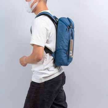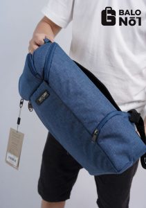– Mặt trước túi hình hộp với đầu khóa kéo, may nổi logo ở nắp túi.