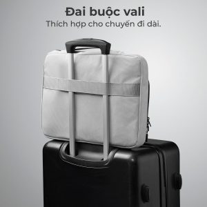 Ngăn chính rộng rãi đựng laptop; thêm ngăn phụ tiện ích để chứa sạc, cáp, chuột, phụ kiện — giúp bạn sắp xếp ngăn nắp, tránh va chạm giữa laptop và phụ kiện.