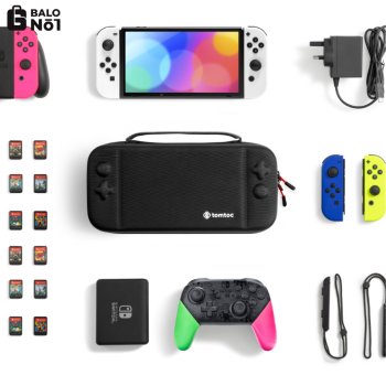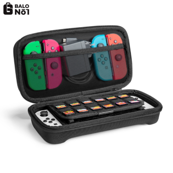 Hộp đựng này có thể chứa máy chơi game và bộ điều khiển Pro của bạn mà không làm bạn quá tải. Nó đi kèm với các ngăn được chia để chứa thiết bị Switch với bộ điều khiển Joy-Con được gắn vào, Bộ điều khiển Pro, bộ đổi nguồn AC và Joy-Cons bổ sung. Ngoài ra còn có chỗ lưu trữ cho tối đa 24 thẻ trò chơi cũng như giá đỡ tích hợp.