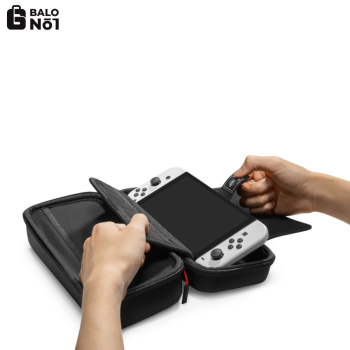 Chiếc túi chông va đập này được thiết kế để mang theo máy chơi game NS/OLED và các phụ kiện khác như Pro Controller, Joy-con Grip hoặc bộ đổi nguồn AC khi di chuyển.