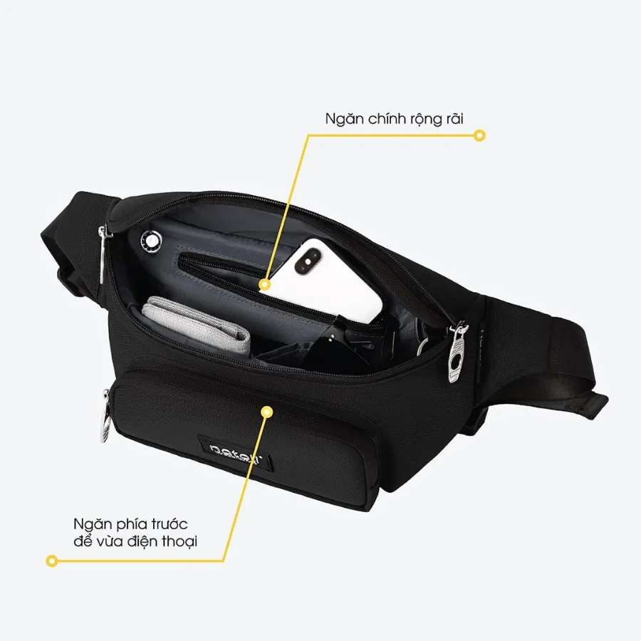 Túi được trang bị nhiều ngăn tiện dụng, giúp bạn sắp xếp các vật dụng cá nhân như điện thoại, ví tiền, tai nghe, passport một cách gọn gàng. Ngăn trước nhỏ tiện lợi cho đồ dùng nhanh, trong khi ngăn chính rộng rãi đáp ứng nhu cầu mang theo hàng ngày.