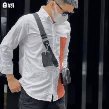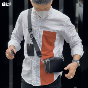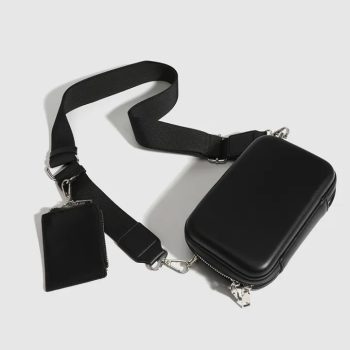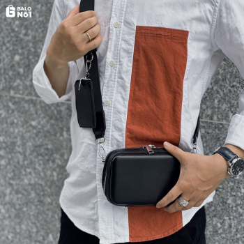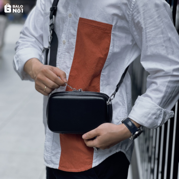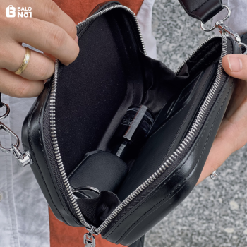 Túi Đeo Chéo Unisex Đen Trơn Kèm Túi Nhỏ