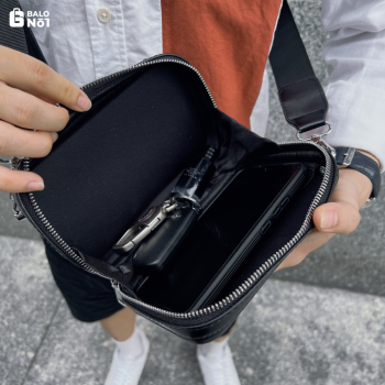 Túi Đeo Chéo Unisex Đen Trơn kế hiện đại, trẻ trung, phù hợp đựng những thứ cần thiết để sử dụng hằng ngày. Đựng được các vật dụng cá nhân như ví tiền, các loại smart phone, sạc dự phòng và những vật dụng khác…