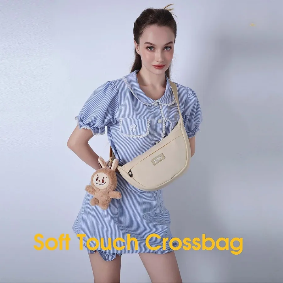 Túi phao đeo chéo Natoli Soft Touch Crossbag T26 là mẫu túi nổi bật với thiết kế bán nguyệt mềm mại – chần bông êm ái – thời trang hiện đại, phù hợp cho cả nam và nữ sử dụng hằng ngày.