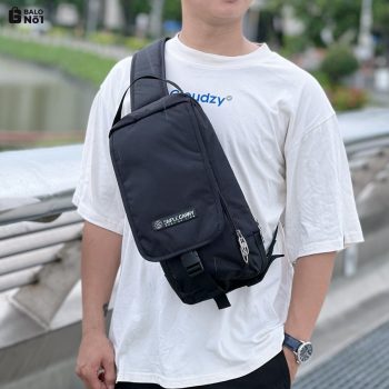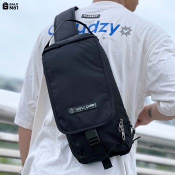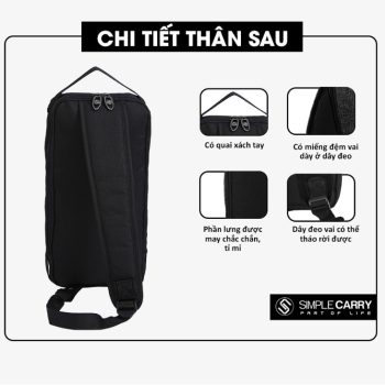 TÚI SLING BLACK SIMPLE CARRY được làm từ chất liệu Polyester trượt nước cao cấp, hỗ trợ chống thấm, vải lót bên trong dày chắc, cứng cáp, chống bám bụi, chống ẩm mốc, đem lại độ bền cao