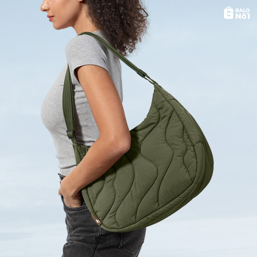 Với hình dáng phồng, mềm mại, chiếc túi này mang lại cảm giác nhẹ như không khí, giúp bạn thoải mái di chuyển cả ngày dài. Thiết kế hữu cơ này không chỉ tạo nên phong cách độc đáo mà còn thể hiện lối sống nhẹ nhàng, thư thái.