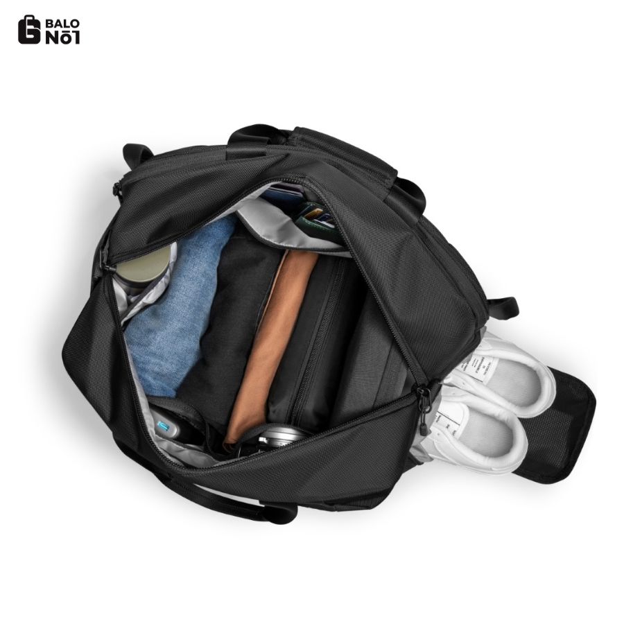Đối với những chuyến tập gym, bạn có thể sử dụng ngăn trước bằng polyester 210D bền và chống nước để đựng quần áo tập gym, thậm chí cả khăn ướt. Ngăn đựng giày thông thoáng có thể chứa giày nam cỡ 11.