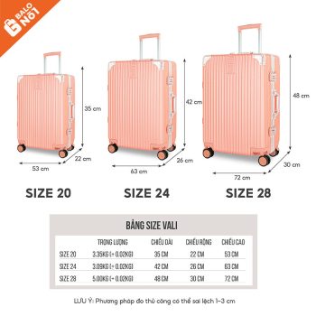 Vali Du Lịch L028 có 3 size: