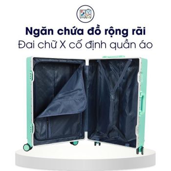 Khoang chứa đồ rộng rãi chia làm 2 ngăn lớn, Bên trong lót vải 210D dày dặn, một bên dây đai chữ X + ngăn lưới có khóa kéo cố định đồ, một bên ngăn vải có khóa kéo giữ cho hành lý luôn ngăn nắp khi di chuyển. Có thêm ngăn nhỏ để phụ kiện gọn gàng