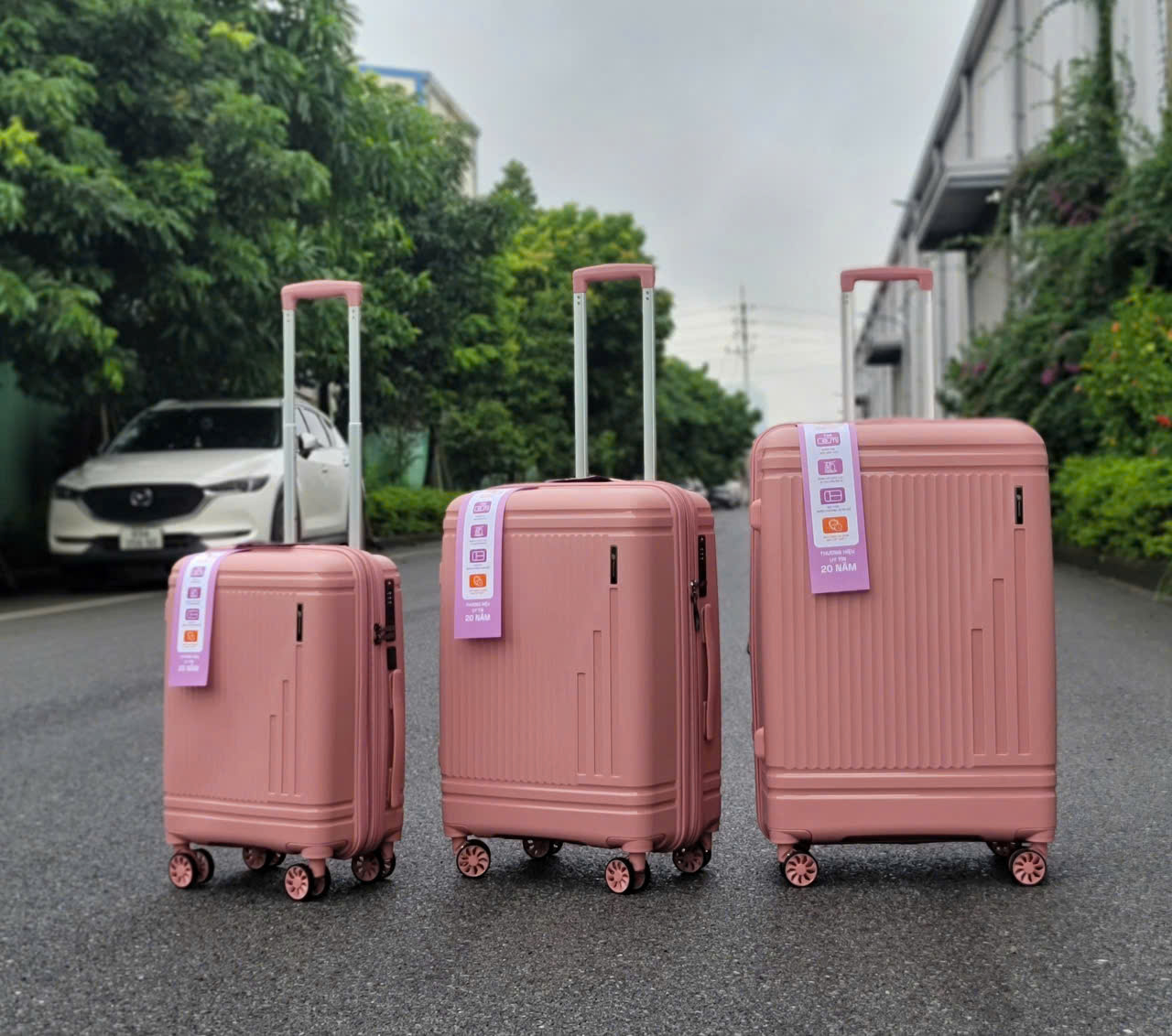 • Phụ kiện đồng bộ: Khóa kéo, tay cầm, logo… đều được thiết kế đồng nhất, tôn lên vẻ sang trọng của vali.