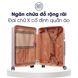 Nội thất rộng rãi, có ngăn lưới phụ và đai chữ X cố định hành lý, lót được bồi xốp